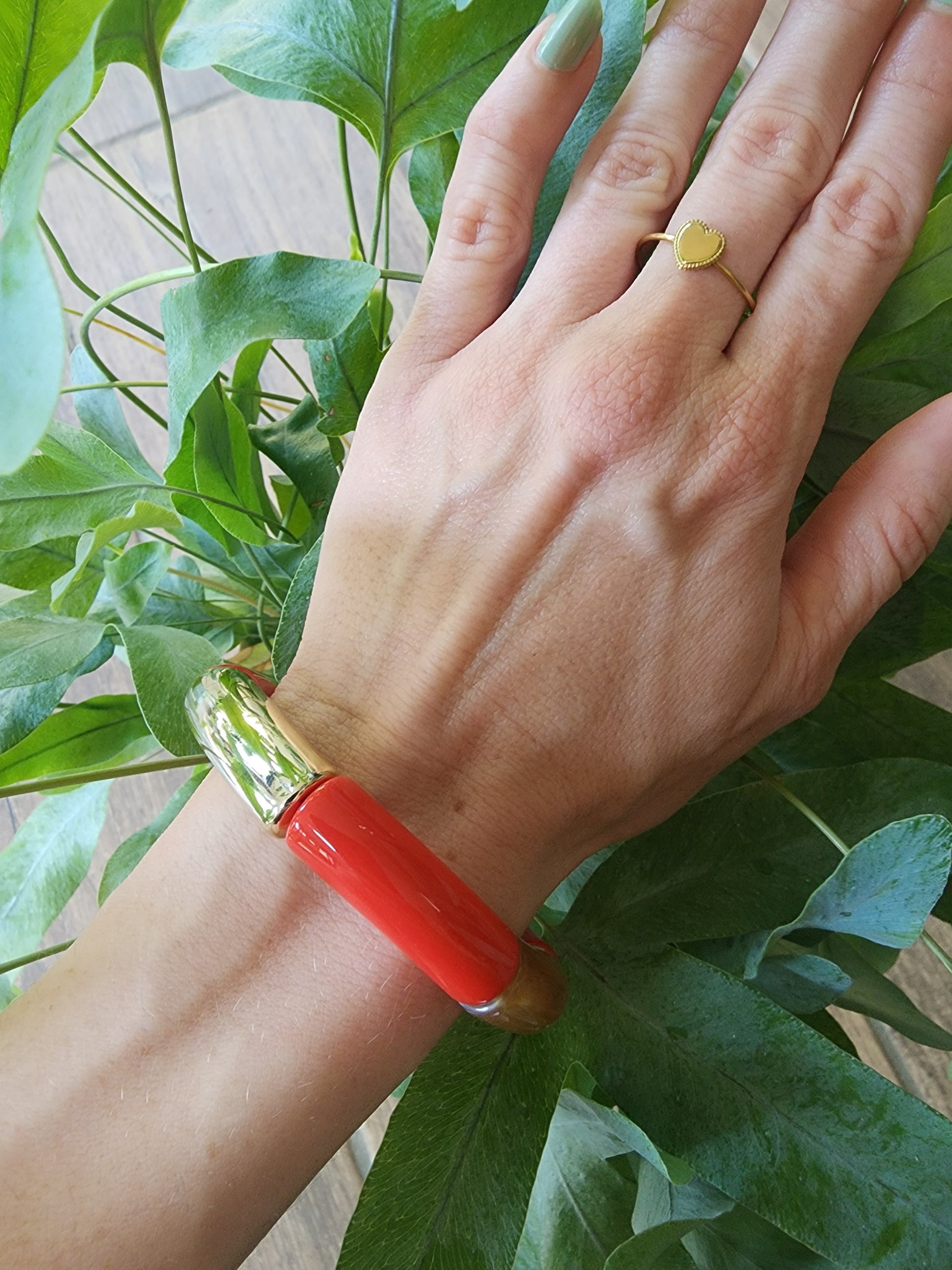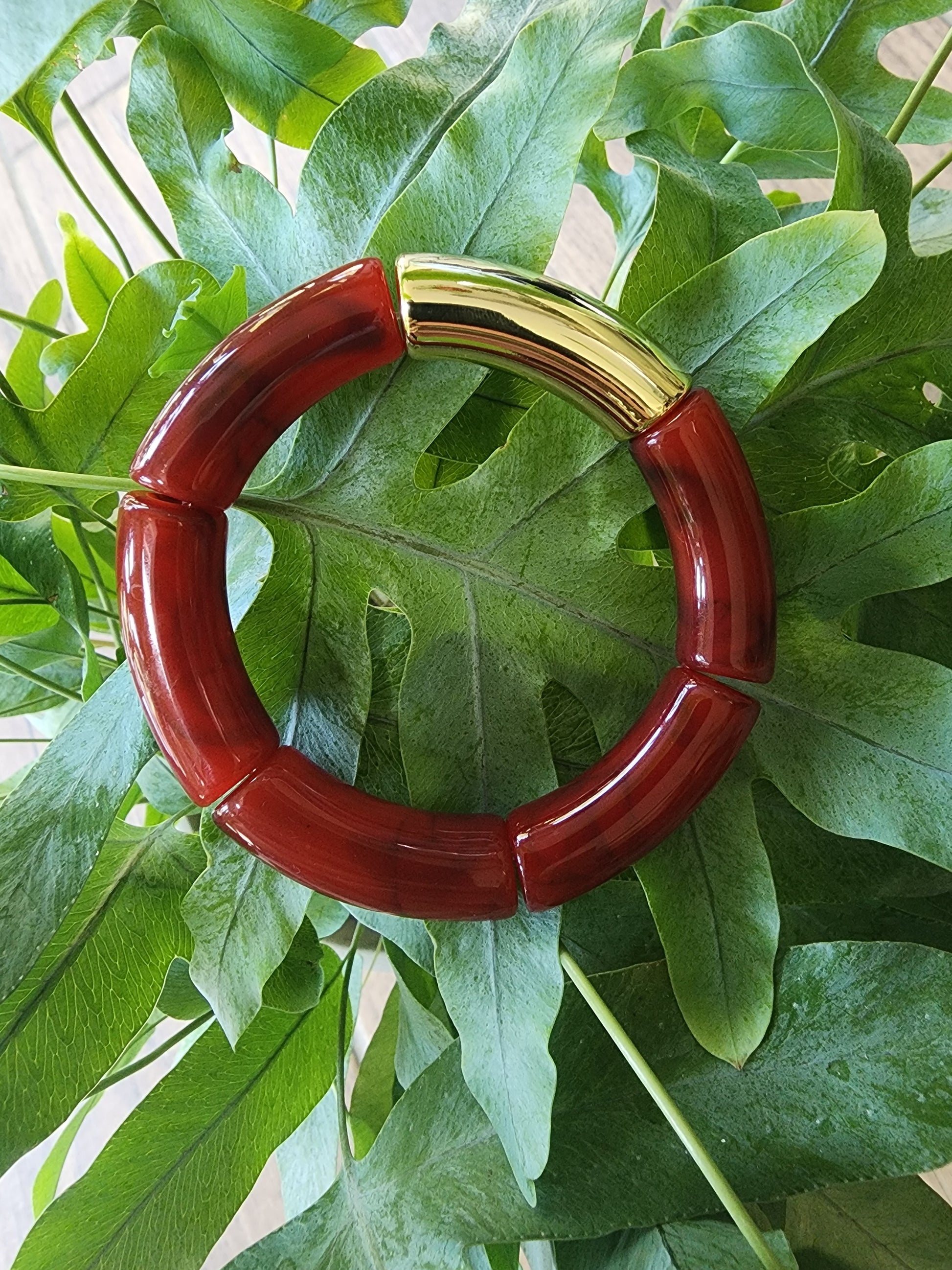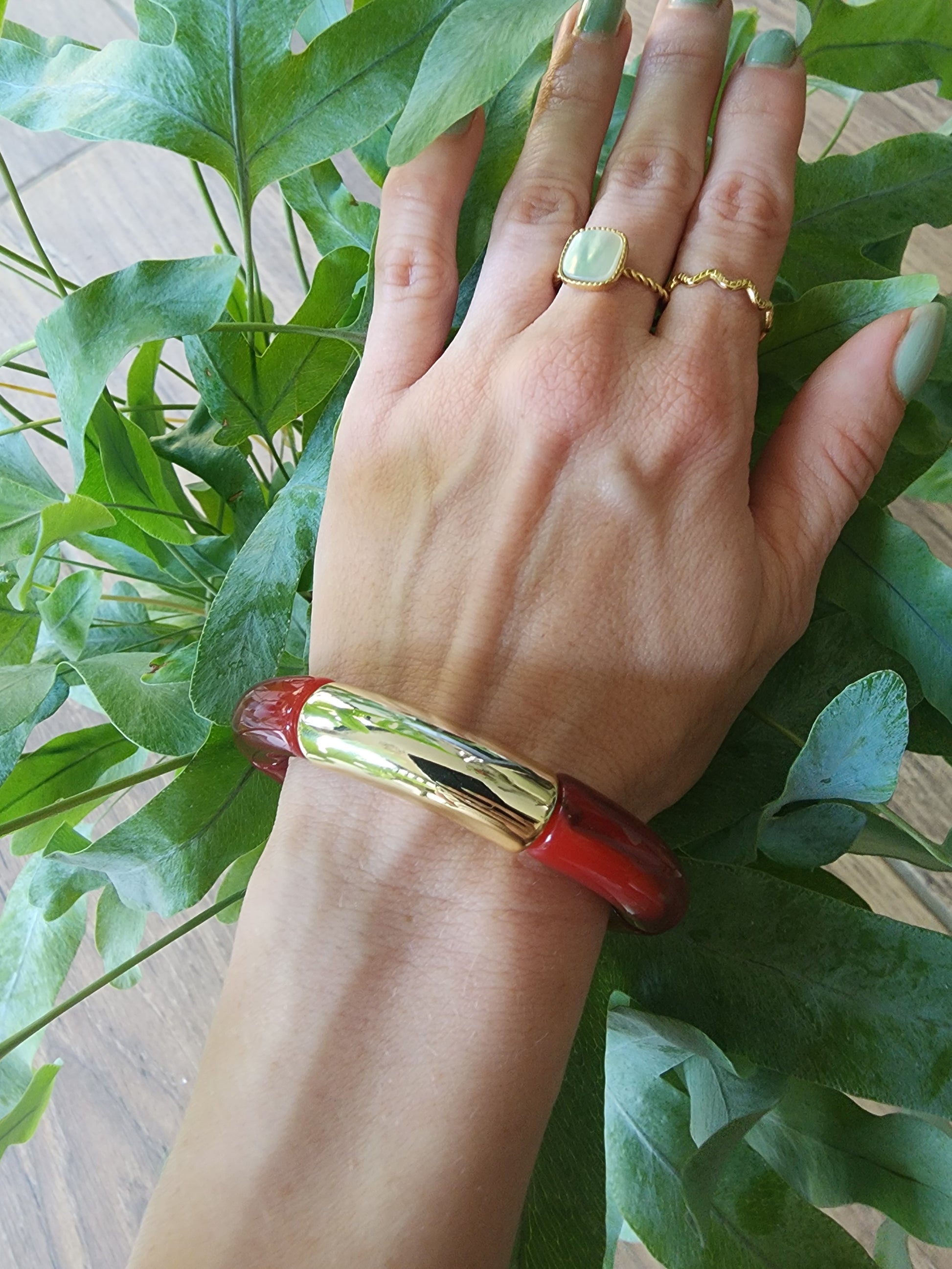 Bracelet jonc automnal en acétate coloré.
